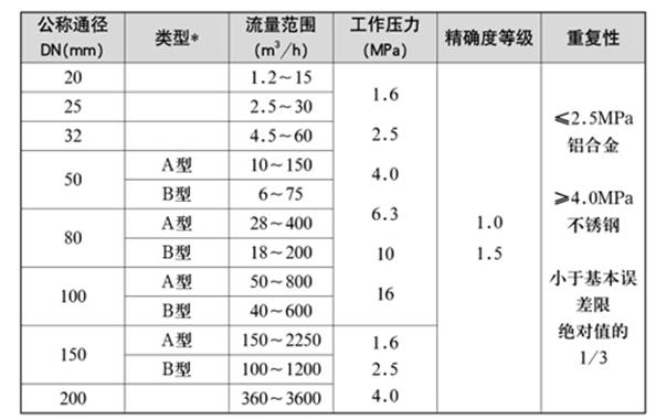 1、流量(liang)計規格(ge)、基本參(can)數和性(xìng)能指标(biao)(見表1)
